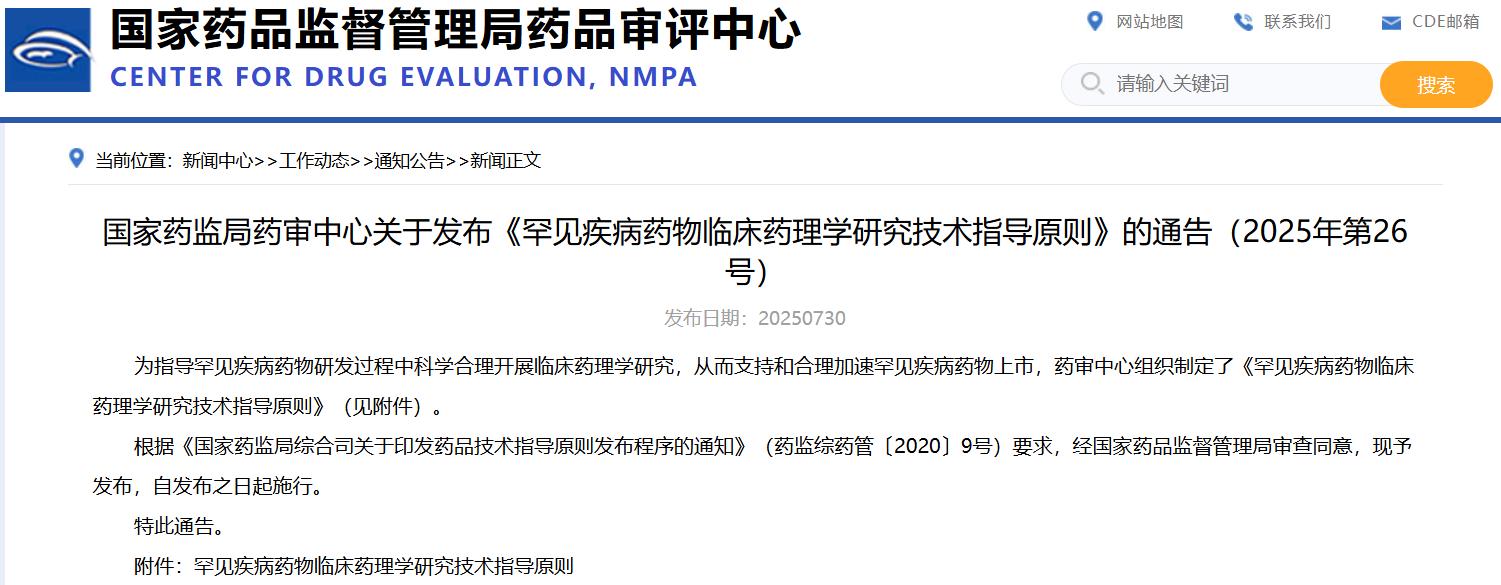 國家藥監(jiān)局藥審中心關(guān)于發(fā)布《罕見疾病藥物臨床藥理學(xué)研究技術(shù)指導(dǎo)原則》的通告(2025年第26號)